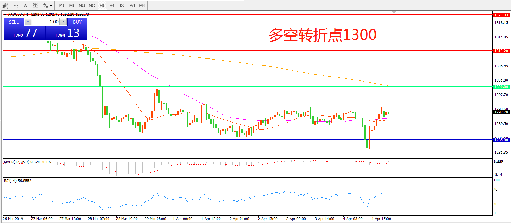交易策略:在1300.00之下看跌,目标1285.00   1270.00