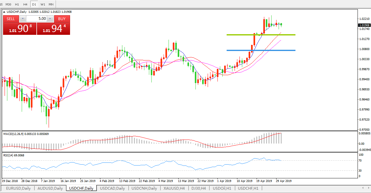 交易策略:1.0150之上,看涨,目标价位为 1.0250,然后为1.0340。