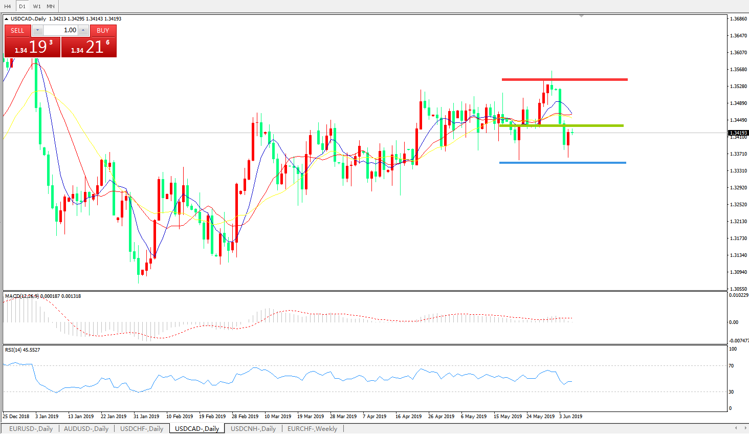 美元加元USDCAD——日K线图显示: