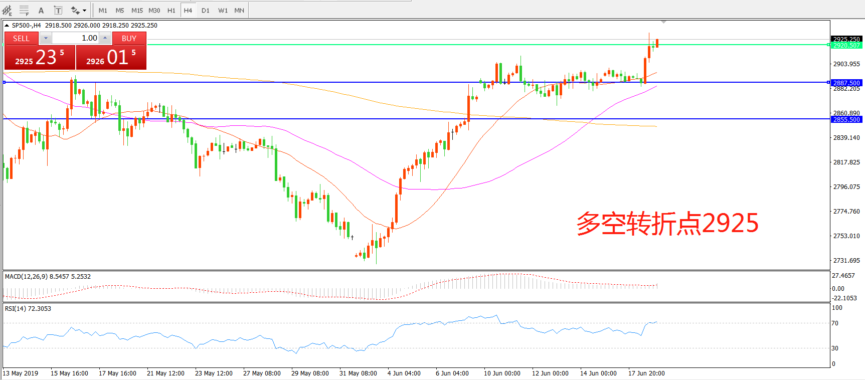多空转折点:2925.50