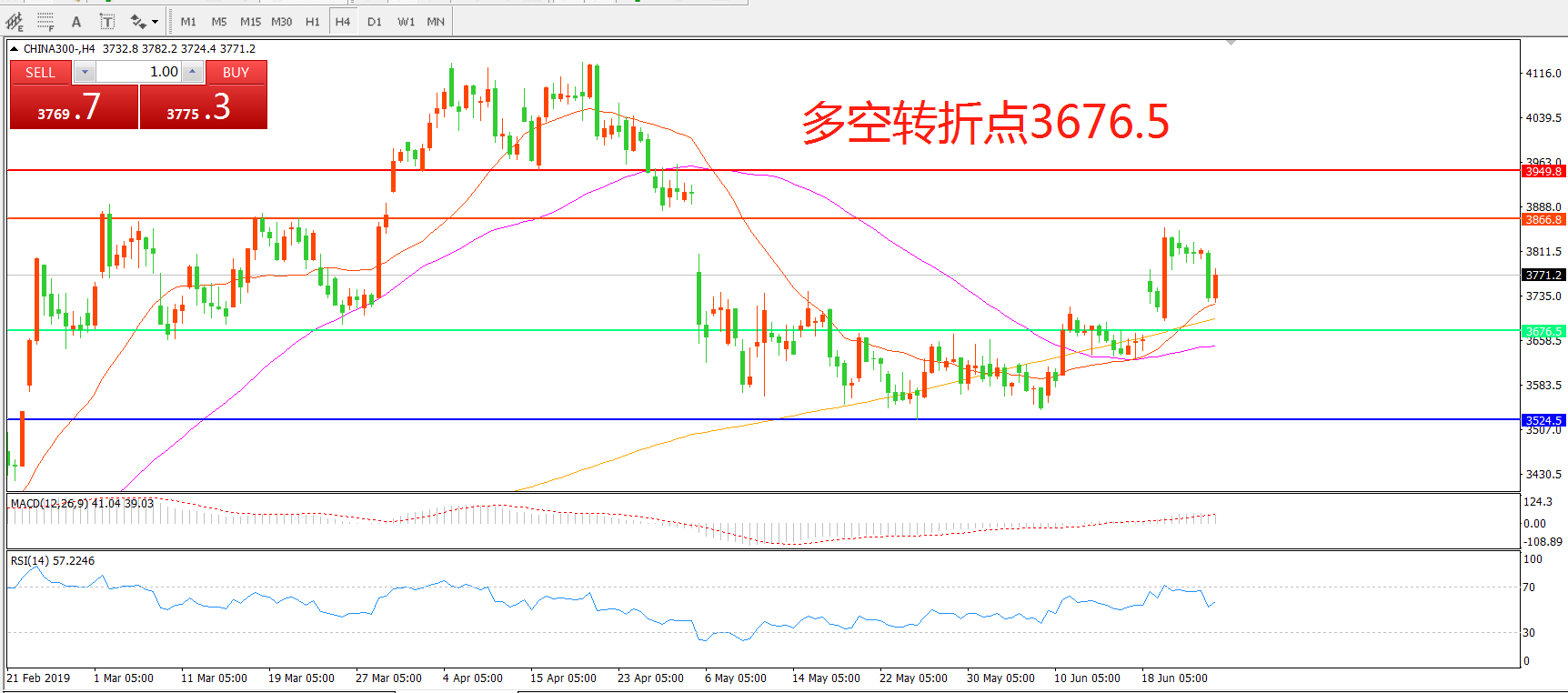 沪深300指数CHINA300 4小时图