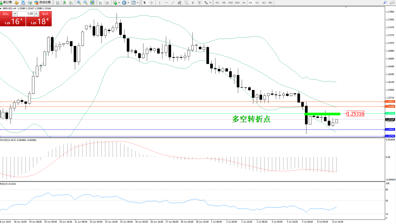 英镑美元GBPUSD ——4小时K线图显示: