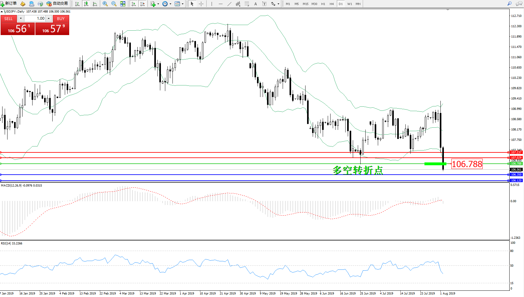 交易策略:106.788下方看跌,目标106.350106.120