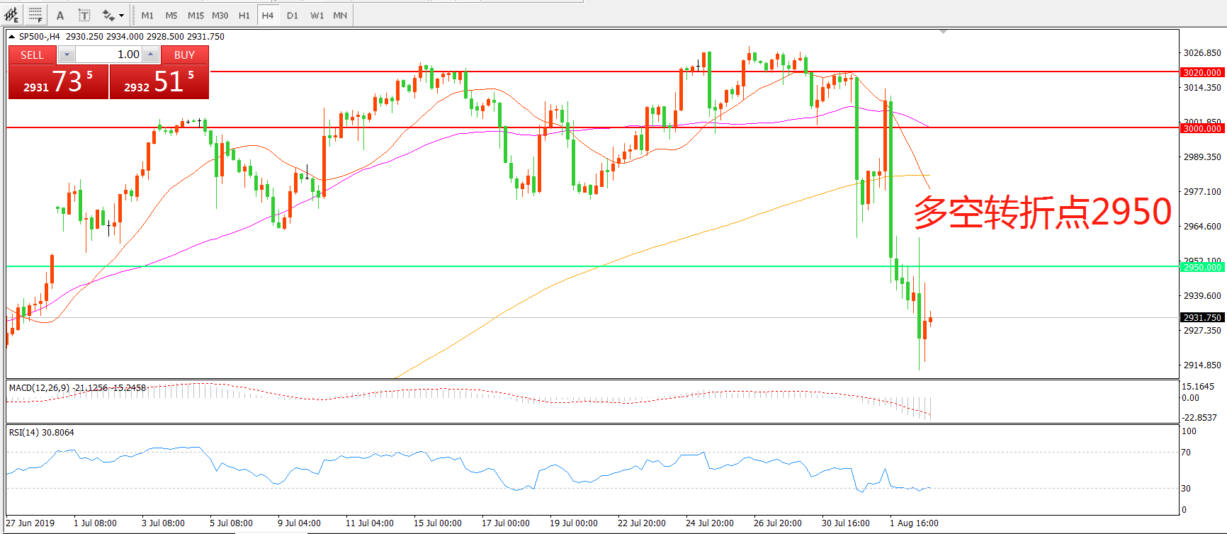 多空转折点:2950.00
