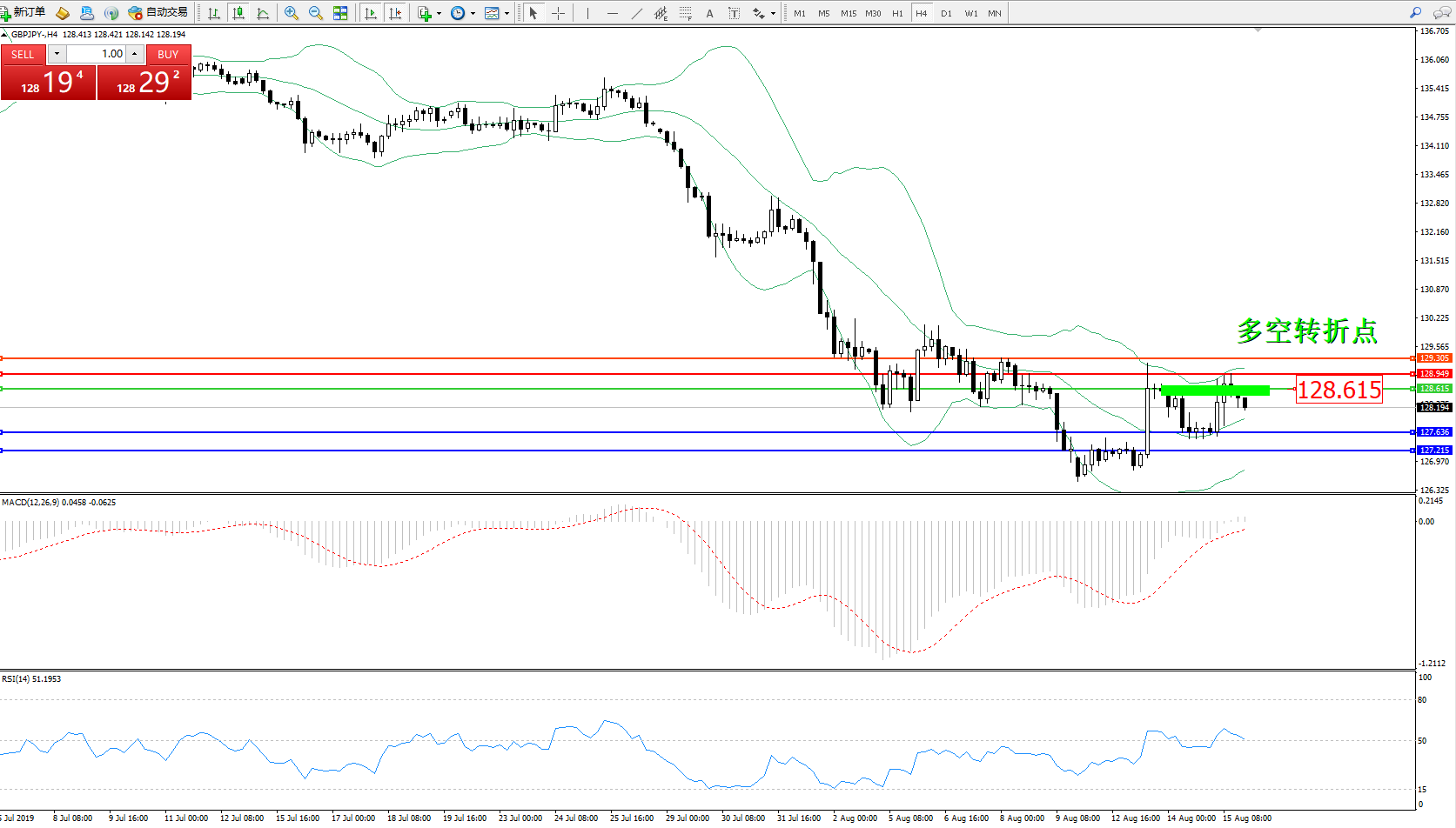 多空转折点:128.615
