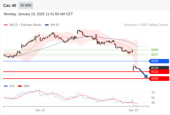 交易策略: 在 8185 之下,看跌,目标价位为 8115 ,然后为 8069 。