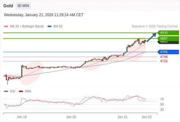 在 4785 之上,看涨,目标价位为 4887 ,然后为 4930 。