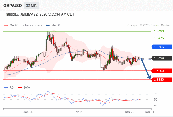 在 1.3455 之下,看跌,目标价位为 1.3400 ,然后为 1.3380 。
