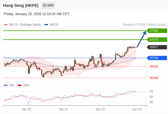 香港恒生指数期货 当日内: 期待27250。