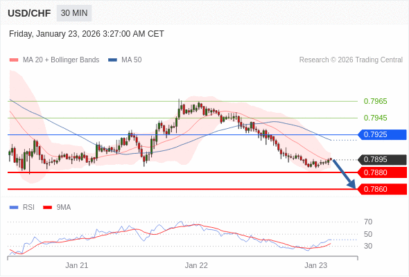 美元/瑞郎 当日内: 期待0.7880。