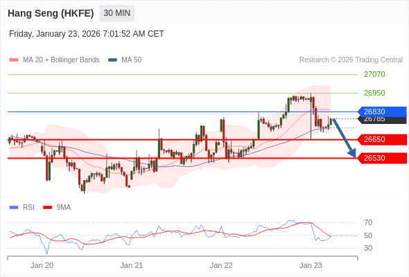香港恒生指数期货 当日内: 短期关键阻力位在26830。