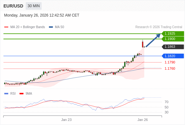 在 1.1820 之上,看涨,目标价位为 1.1900 ,然后为 1.1925 。