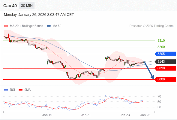 Cac 40 当日内: 谨慎操作。