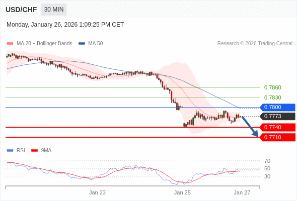 美元/瑞郎 当日内: 短期关键阻力位在0.7800。