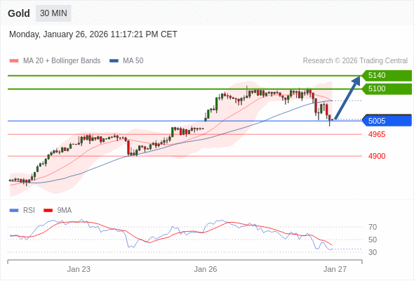 在 5005 之上,看涨,目标价位为 5100 ,然后为 5140 。