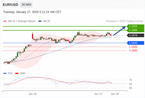 在 1.1840 之上,看涨,目标价位为 1.1905 ,然后为 1.1925 。
