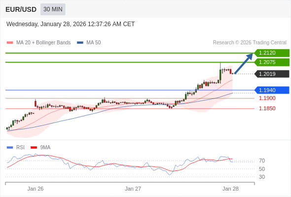 在 1.1940 之上,看涨,目标价位为 1.2075 ,然后为 1.2120 。
