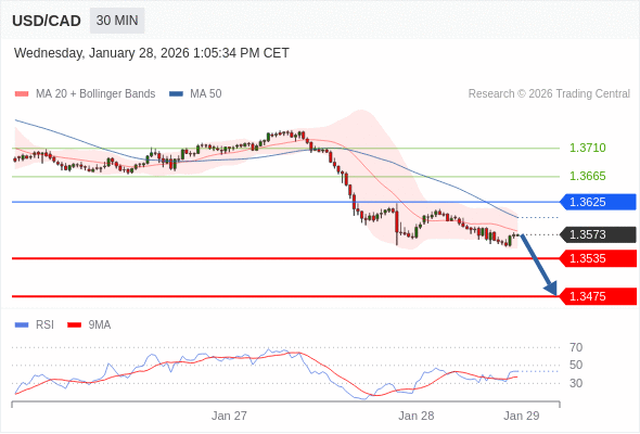 在 1.3625 之下,看跌,目标价位为 1.3535 ,然后为 1.3475 。