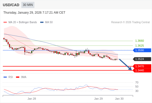 在 1.3590 之下,看跌,目标价位为 1.3470 ,然后为 1.3440 。