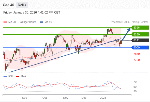 在 8000 之上,看涨,目标价位为 8260 ,然后为 8396 。