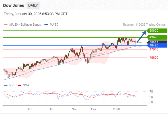 Dow Jones 短线: 在48420之上,看涨。
