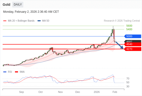 在 5000 之下,看跌,目标价位为 4540 ,然后为 4270 。