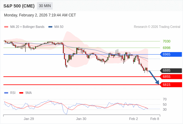 在 6965 之下,看跌,目标价位为 6855 ,然后为 6815 。