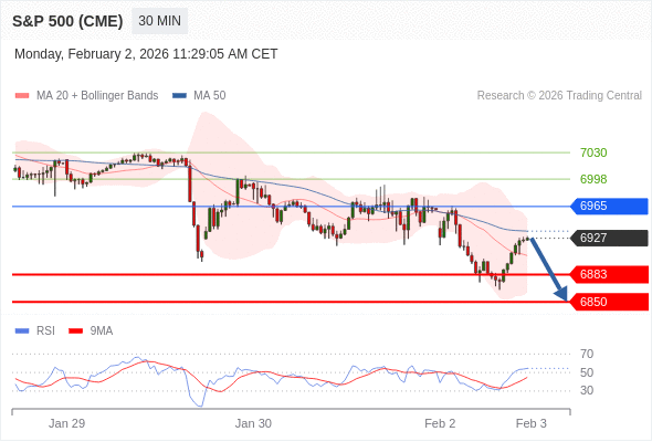 在 6965 之下,看跌,目标价位为 6883 ,然后为 6850 。