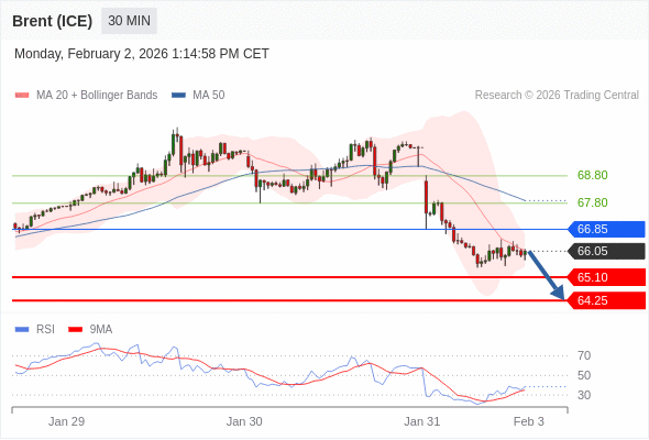 在 66.85 之下,看跌,目标价位为 65.10 ,然后为 64.25 。