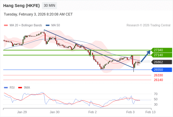在 26550 之上,看涨,目标价位为 27140 ,然后为 27340 。