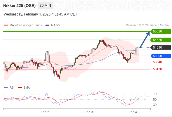 在 53900 之上,看涨,目标价位为 54820 ,然后为 55310 。