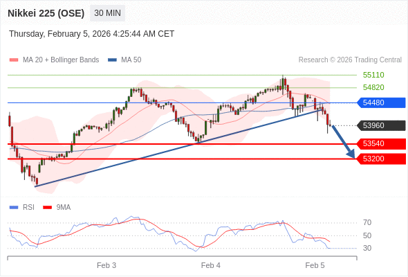 在 54480 之下,看跌,目标价位为 53540 ,然后为 53200 。