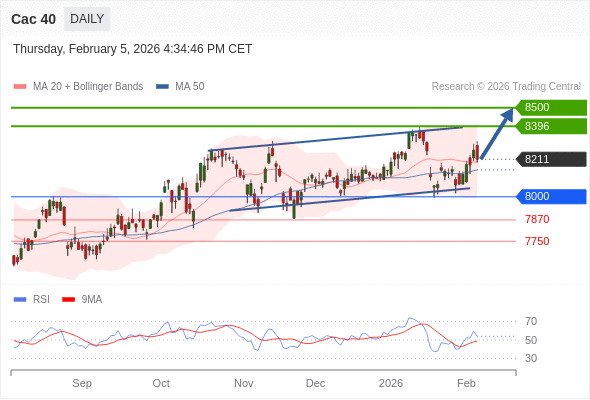 在 8000 之上,看涨,目标价位为 8396 ,然后为 8500 。