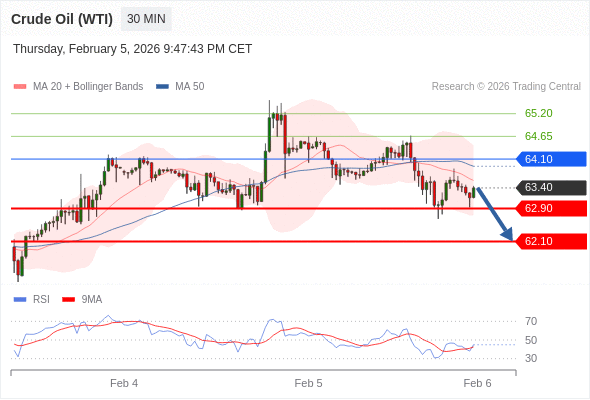 在 64.10 之下,看跌,目标价位为 62.90 ,然后为 62.10 。