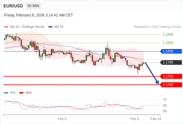 在 1.1805 之下,看跌,目标价位为 1.1760 ,然后为 1.1745 。