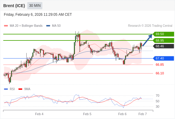 在 67.40 之上,看涨,目标价位为 68.95 ,然后为 69.50 。