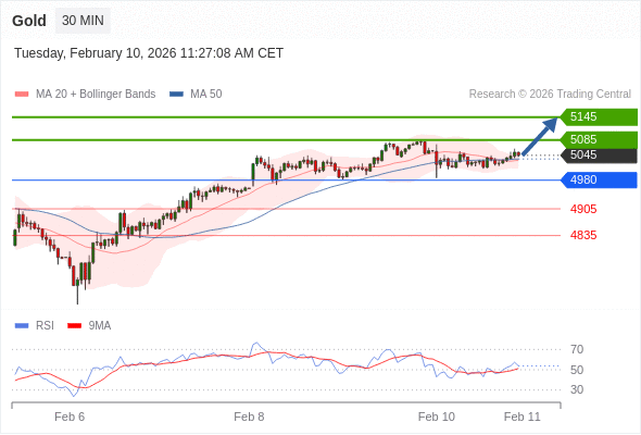 在 4980 之上,看涨,目标价位为 5085 ,然后为 5145 。