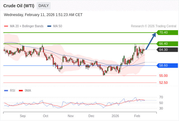 在 58.60 之上,看涨,目标价位为 66.40 ,然后为 70.40 。