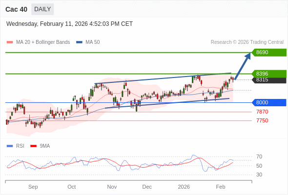 Cac 40 短线: 期待8396。