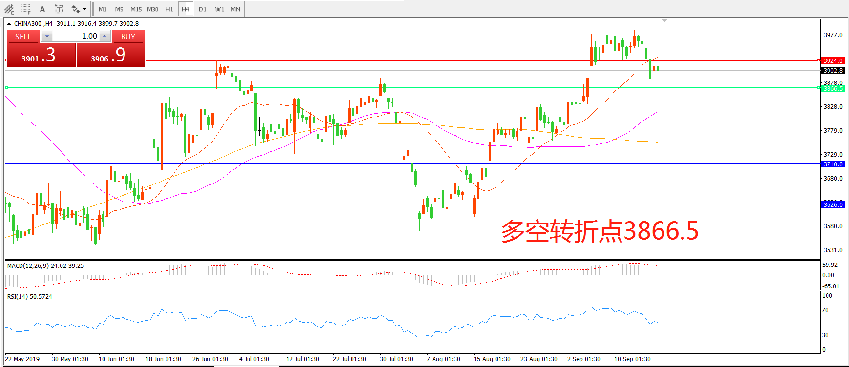 多空转折点:3866.50