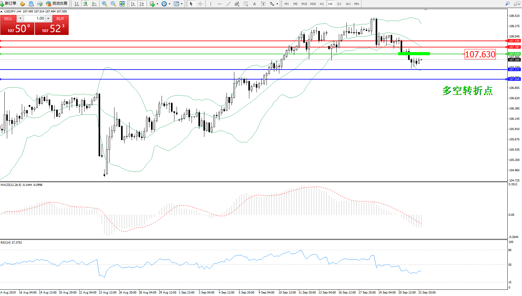 交易策略:107.630下方看跌,目标107.272107.050