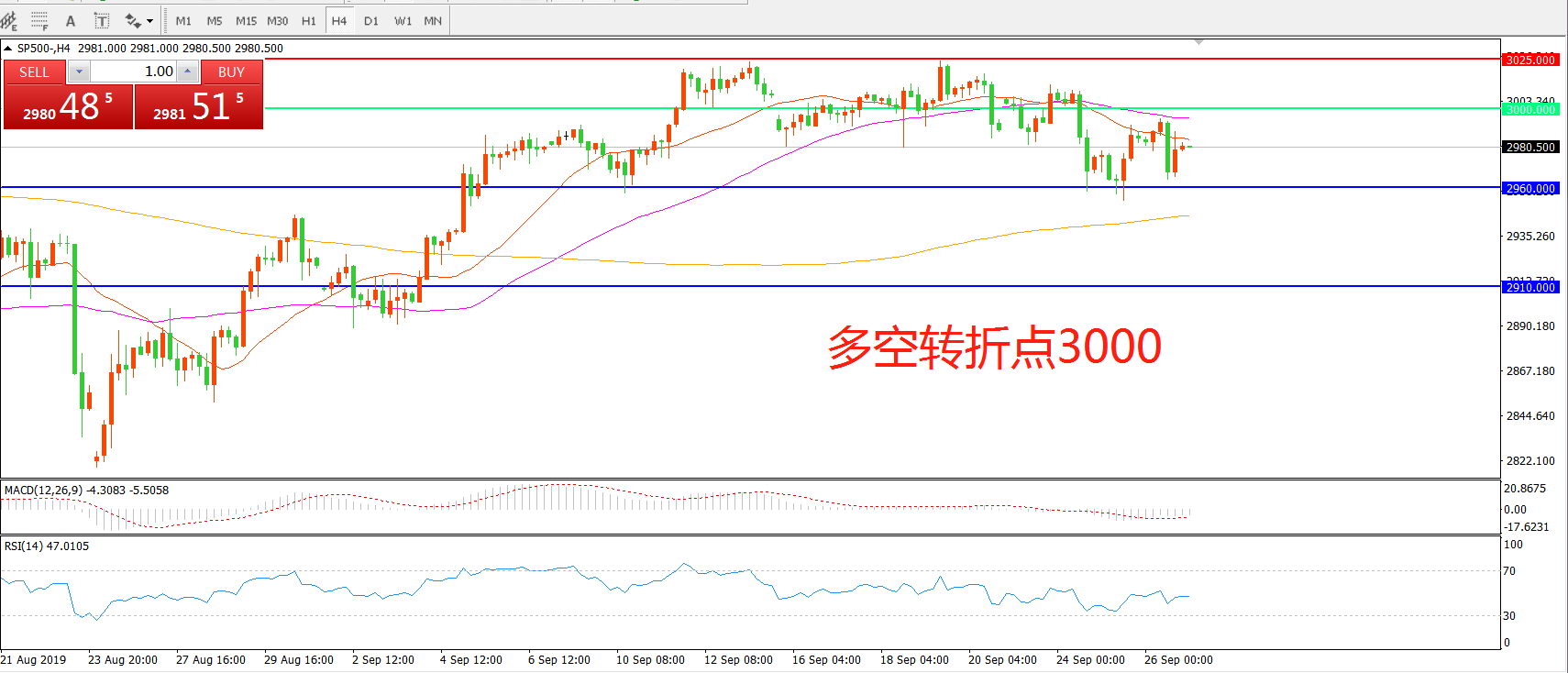 交易策略:在3000.00之下看跌,目标2960.00      2910.00