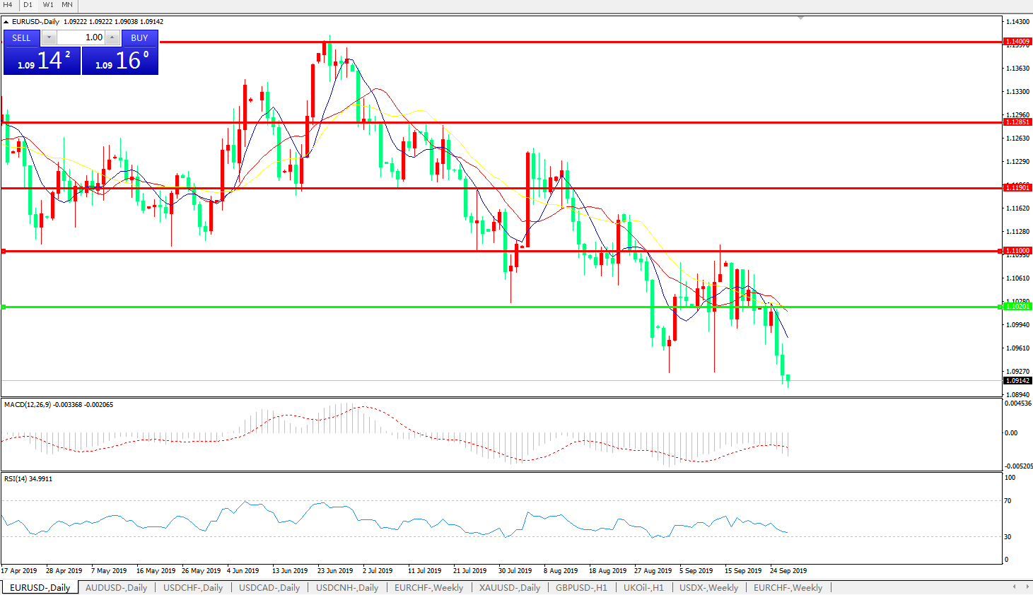 欧元兑美元EURUSD   日线: