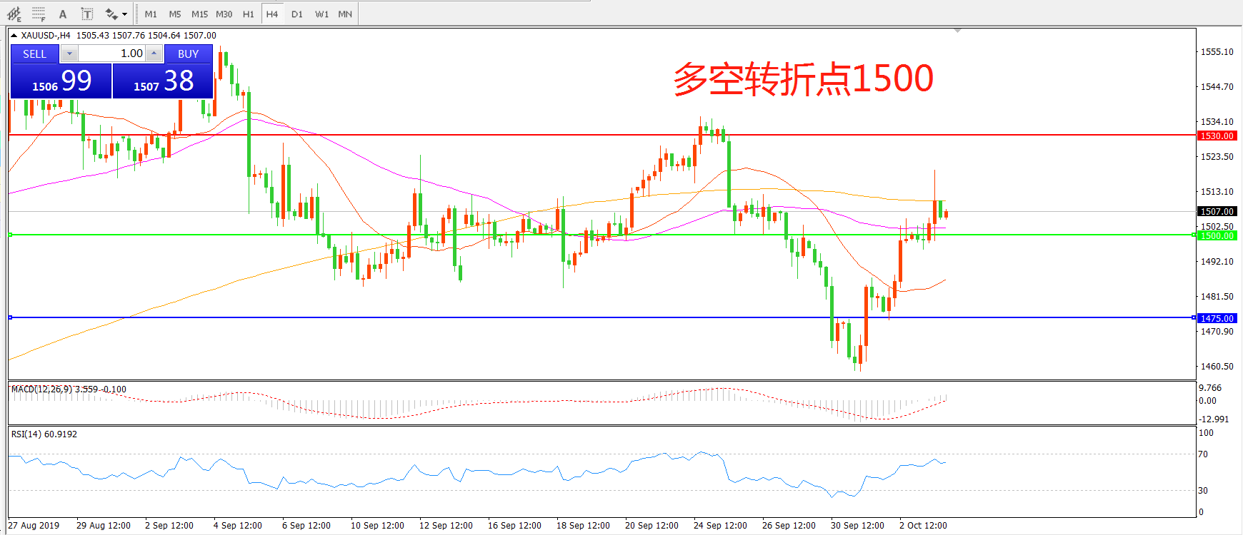 多空转折点:1500.00