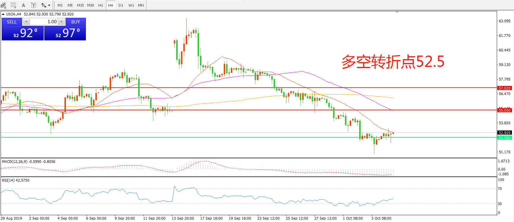 交易策略: 在52.50之下看跌,目标50.00    48.00