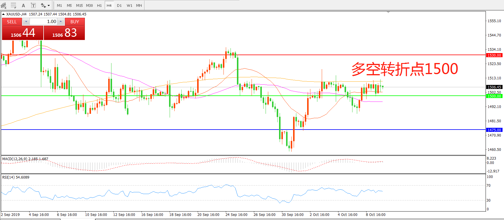 多空转折点:1500.00