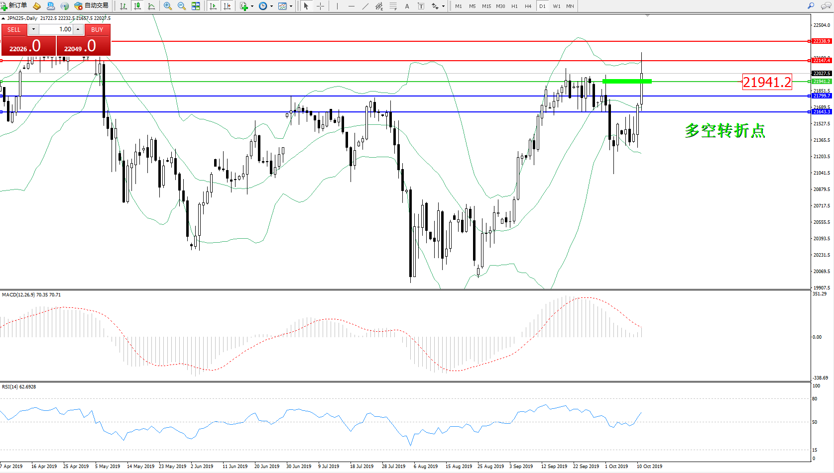 技术点评:多头拉升上移走势持续,触及布林带指标上轨后出现短暂回撤,但多头上移动力未能改变,仍有上行空间,MACD指标维持在0轴线上方持续徘徊中,RSI指标处于50均衡线震荡数日后再度拉升中;