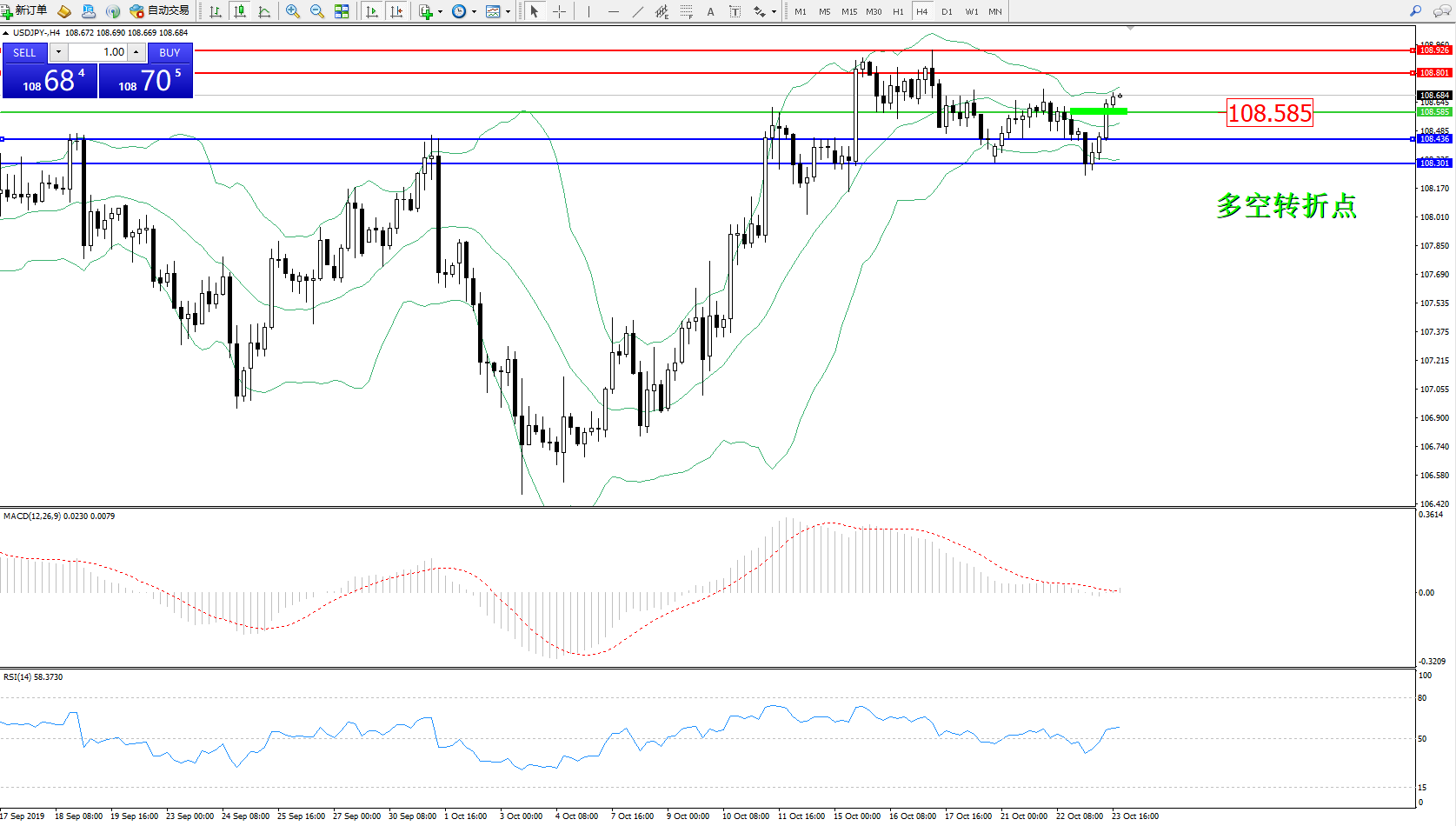 美元兑日元跌0.18%,报108.65,无协议脱欧风险下降,此前英国首相约翰逊表示,如果欧盟批准英国脱欧延期至20201月底,那么此后英国重新举行大选将在所难免。而隔夜,在英国议会否决了首相约翰逊提出的脱欧时间表之后,脱欧进程前景再添变数,全球市场此前一度高度乐观的情绪也因之再趋恶化,这令避险货币日元再度迎来买需,避险日元一度受宠。投资者也正在期待全面贸易环境领域的进一步积极前景,在此状况下,美元兑日元在108关口仍有强支撑,整体区间震荡的格局,尚需更大力度的基本面突发消息变动,才能得以击破。