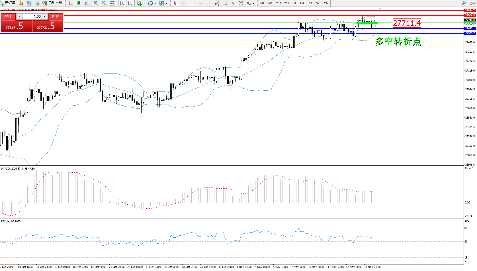 交易策略:27711上方看涨,目标27804、27864