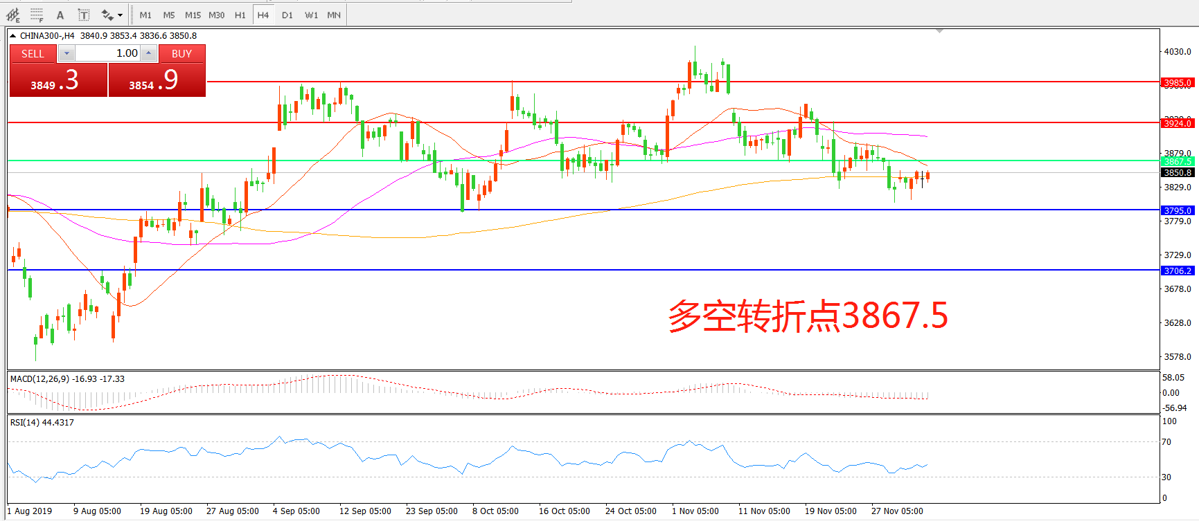 沪深300指数CHINA300 4小时图